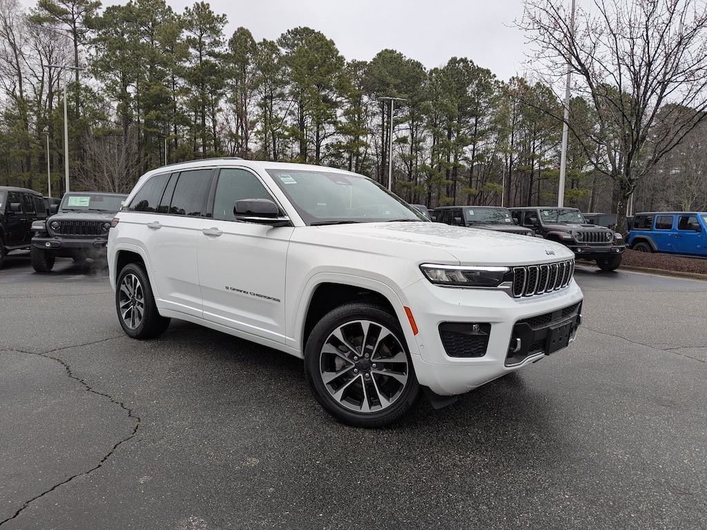 Bright White Clearcoat 2023 Jeep Grand Cherokee Overland 4WD 8-Speed Automatic 3.6L V6 24V VVT 19 Speakers High Performance Audio, 950 Watt Amplifier, Active Driving Assist System, Active Noise Control System, Adaptive suspension, ADV Protech Group III, Auto High-beam Headlights, Automatic temperature control, Heads-Up Display, Heated front seats, Heated rear seats, Integrated Off-Road Camera, Intersection Collision Assist System, Leather Wrapped Steering Wheel, Map-In-Cluster Display, Memory seat, Night Vision w/Pedestrian-Animal Detection, Power Liftgate, Power moonroof, Quick Order Package 23N, Radio: Uconnect 5 Nav w/10.1" Display, Rain sensing wipers, Rear Back-Up Camera Washer, Rear Seat Video Group I, Seatback Video Screens, Surround View Camera System, Ventilated front seats, Video USB Port, Wheels: 20" x 8.5" Machined Face Aluminum.