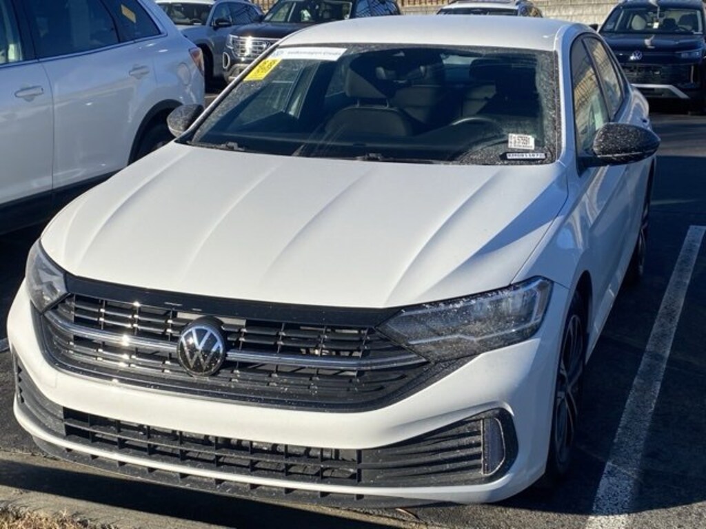 Pure White 2024 Volkswagen Jetta 1.5T Sport FWD 8-Speed Automatic with Tiptronic 1.5L I-4 DI DOHC Turbocharged Certified Warranty - 2 Years / 24,000 Miles, Titan Black w/Cloth Seat Trim, Brake assist, Electronic Stability Control, Emergency communication system: VW Car-Net Safe & Secure 5-year, Exterior Parking Camera Rear, Front Bucket Seats, Fully automatic headlights, Heated front seats, Heavy Duty Trunk Liner w/VW CarGo Blocks, Radio: MIB3 Composition Color w/6.5" Touchscreen, Rain sensing wipers, Remote keyless entry, Rubber Monster Mats Kit (Set of 4), Speed-sensing steering, Split folding rear seat, Steering wheel mounted audio controls, Traction control, Wheels: 17" 2-Tone Machined Alloy.