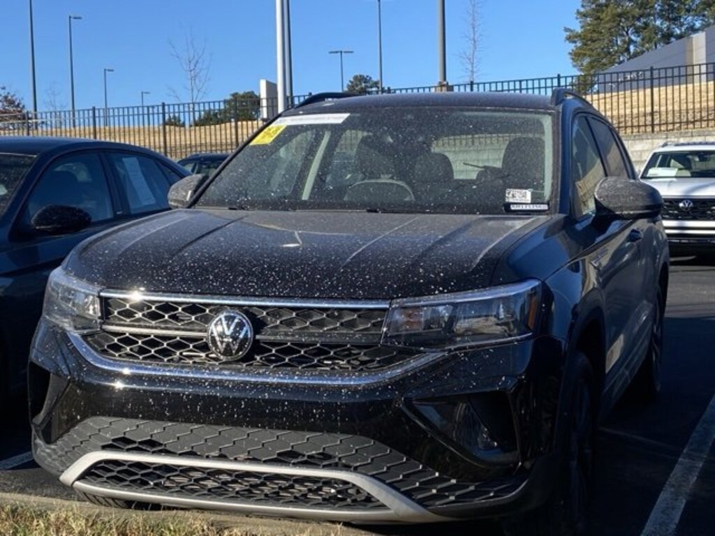 Certified. Deep Black 2024 Volkswagen Taos 1.5T S FWD 8-Speed Automatic with Tiptronic 1.5L I4 Turbocharged DOHC 16V LEV3-SULEV30 158hp Certified Warranty - 2 Years / 24,000 Miles, 3.23 Axle Ratio, Air Conditioning, Auto High-beam Headlights, Brake assist, Cloth Seating Surfaces, Delay-off headlights, Electronic Stability Control, Emergency communication system: VW Car-Net Safe & Secure 5-year, Exterior Parking Camera Rear, Fully automatic headlights, Luggage Net, MDO Package, Radio: Composition Color AM/FM, Rain sensing wipers, Rear window wiper, Remote keyless entry, Rubber Mats Kit (SNM), Speed-sensing steering, Split folding rear seat, Steering wheel mounted audio controls, Traction control, Wheels: 17" Silver Painted Alloy.