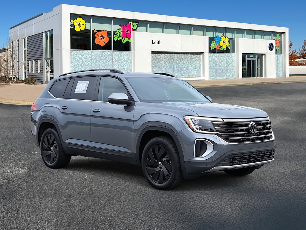 Certified. Platinum Gray Metallic 2025 Volkswagen Atlas 2.0T SE w/Technology FWD 8-Speed Automatic with Tiptronic 2.0L TSI Certified Warranty - 2 Years / 24,000 Miles, 3rd row seats: split-bench, AM/FM radio: SiriusXM with 360L, Auto High-beam Headlights, Automatic temperature control, Black Wheel Package, Brake assist, Electronic Stability Control, Four wheel independent suspension, Front dual zone A/C, Fully automatic headlights, Heated & Actively Ventilated Front Bucket Seats, Heated front seats, Heated steering wheel, Panoramic Sunroof Package, Perforated V-Tex Leatherette Seating Surfaces, Power driver seat, Power Liftgate, Power Tilting & Sliding Panoramic Sunroof, Radio: MIB3 Composition Media, Rain sensing wipers, Rear air conditioning, Rear window wiper, Remote Engine Start Feature, Remote keyless entry, Speed-sensing steering, Split folding rear seat, Steering wheel mounted audio controls, Traction control, Ventilated front seats, Wheels: 20" Multi-Spoke Black Painted Alloy.
