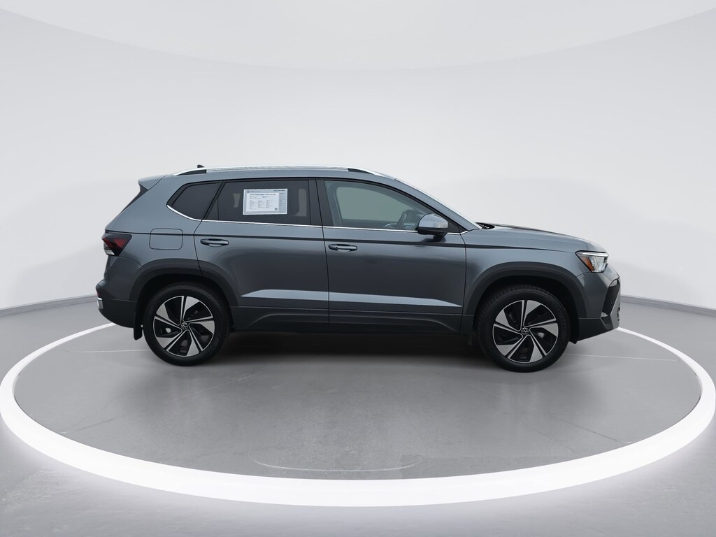 Certified. Platinum Gray Metallic 2025 Volkswagen Taos 1.5T SE AWD 8-Speed Automatic with Tiptronic 1.5L I4 Turbocharged DOHC 16V LEV3-SULEV30 174hp Local Trade, Non-Smoker, Serviced Here, Purchased Here, Certified Warranty - 2 Years / 24,000 Miles, AM/FM radio: SiriusXM with 360L, Automatic temperature control, Brake assist, CloudTex & Cloth Seating Surfaces, Electronic Stability Control, Emergency communication system: VW Car-Net Safe & Secure 5-year, Exterior Parking Camera Rear, Four wheel independent suspension, Front dual zone A/C, Heated Front Bucket Seats, Panoramic Sunroof Package, Power driver seat, Radio: MIB3 Composition Media AM/FM/HD, Rain sensing wipers, Rear window wiper, Remote keyless entry, Rubber Mats Kit, Speed-sensing steering, Split folding rear seat, Steering wheel mounted audio controls, Traction control, VW Care, Wheels: 18" 2-Tone Machined Alloy.
