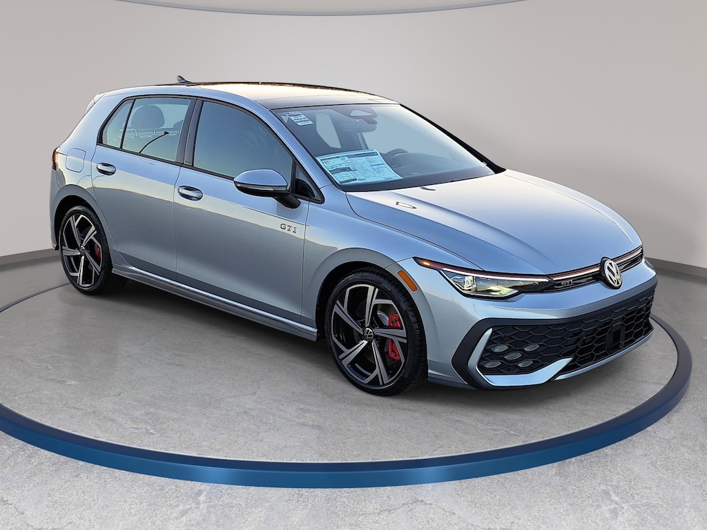 Alpine Silver Metallic 2026 Volkswagen Golf GTI 2.0T SE FWD 7-Speed DSG Automatic with Tiptronic 2.0L TSI DOHC AM/FM radio: SiriusXM with 360L, ArtVelours Seating Surfaces, Auto High-beam Headlights, Auto-dimming Rear-View mirror, Automatic temperature control, Black Bumperdillo Protection Plate For Rear Bumper, Brake assist, Electronic Stability Control, Emergency communication system: VW Car-Net Safe & Secure 5-year, Forward collision: FCW w/Autonomous Emergency Braking mitigation, Four wheel independent suspension, Front Center Armrest, Front fog lights, Fully automatic headlights, harman/kardon® Speakers, Heated front seats, Heavy Duty Trunk Liner w/VW CarGo Blocks, Navigation System, Power driver seat, Power moonroof: Panoramic, Power passenger seat, Radio: MIB3 Discover Pro AM/FM/HD w/12.9" Touchscreen Navigation, Rain sensing wipers, Rear window wiper, Remote keyless entry, Rubber Monster Mats (Set of 4), Speed-sensing steering, Speed-Sensitive Wipers, Split folding rear seat, Steering wheel mounted audio controls, Traction control, VW Care, Wheels: 18" 2-Tone Diamond-Turned Alloy.