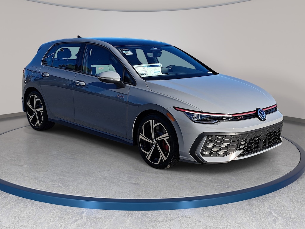 Moonstone Gray 2026 Volkswagen Golf GTI 2.0T SE FWD 7-Speed DSG Automatic with Tiptronic 2.0L TSI DOHC Actively Ventilated Front Seats, AM/FM radio: SiriusXM with 360L, Auto High-beam Headlights, Automatic temperature control, Brake assist, Electronic Stability Control, Emergency communication system: VW Car-Net Safe & Secure 5-year, Exterior Parking Camera Rear, Forward collision: FCW w/Autonomous Emergency Braking mitigation, Four wheel independent suspension, Fully automatic headlights, harman/kardon® Speakers, Heated front seats, Heavy Duty Trunk Liner w/VW CarGo Blocks, Navigation System, Padded Door Panels w/Leatherette Inserts, Perforated Vienna Leather Seating Surfaces, Power Adjustable Driver's Seat w/3 Position Memory, Power driver seat, Power moonroof: Panoramic, Power passenger seat, Radio: MIB3 Discover Pro AM/FM/HD w/12.9" Touchscreen Navigation, Rain sensing wipers, Rear window wiper, Remote keyless entry, Rubber Monster Mats (Set of 4), SE Leather Seating Package, Speed-sensing steering, Speed-Sensitive Wipers, Split folding rear seat, Steering wheel mounted audio controls, Traction control, VW Care, Wheels: 18" 2-Tone Diamond-Turned Alloy.
