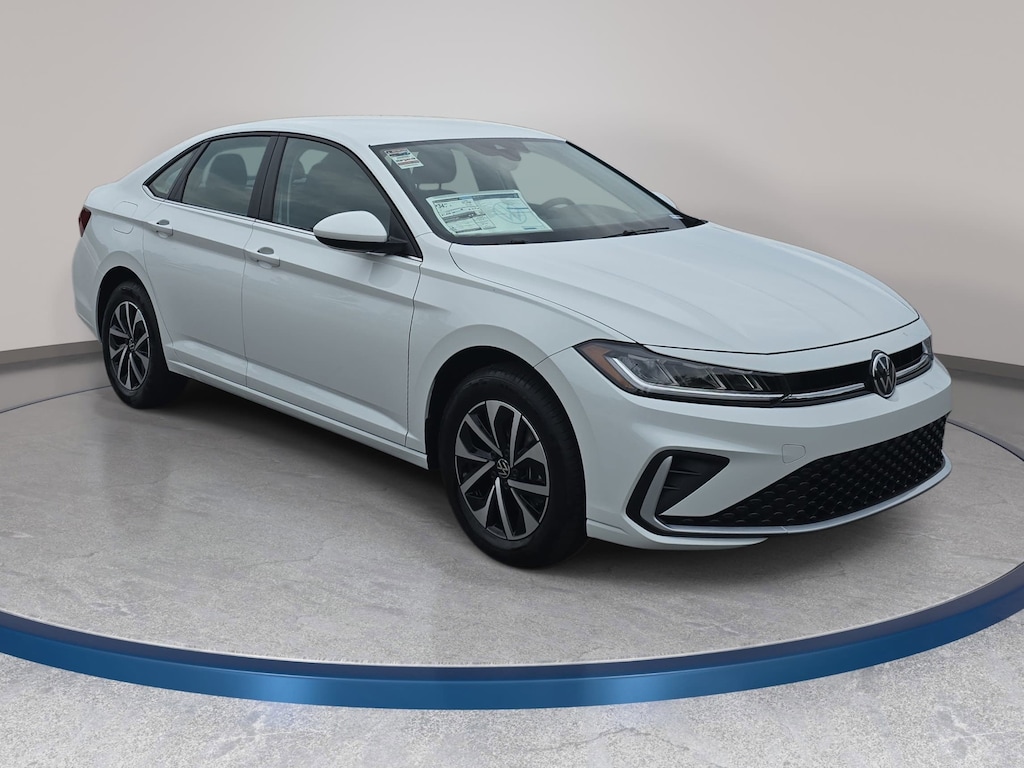 Pure White 2026 Volkswagen Jetta 1.5T S FWD 8-Speed Automatic with Tiptronic 1.5L I-4 DI DOHC Turbocharged Titan Black w/Cloth Seat Trim, Automatic temperature control, Brake assist, Electronic Stability Control, Emergency communication system: VW Car-Net Safe & Secure 5-year, Exterior Parking Camera Rear, First Aid Kit, Front Bucket Seats, Front dual zone A/C, Fully automatic headlights, Radio: MIB3 Composition Color with 8" Touchscreen, Rain sensing wipers, Remote keyless entry, Speed-sensing steering, Split folding rear seat, Steering wheel mounted audio controls, Traction control, Variably intermittent wipers, VW Care, Wheels: 16" 2-Tone Machined Alloy.