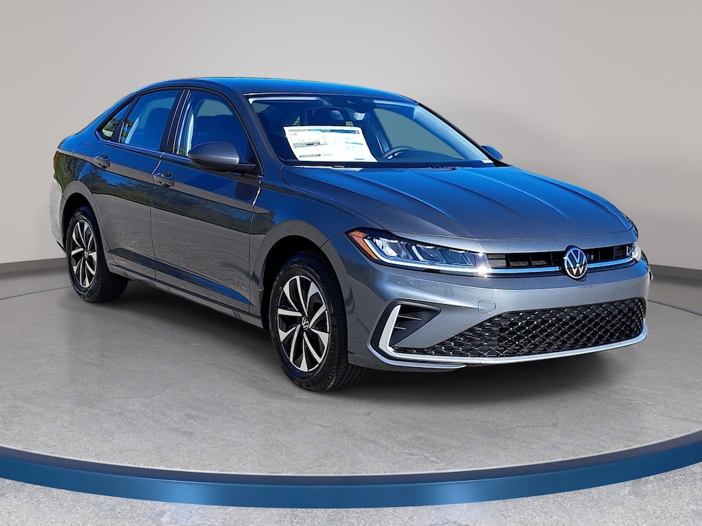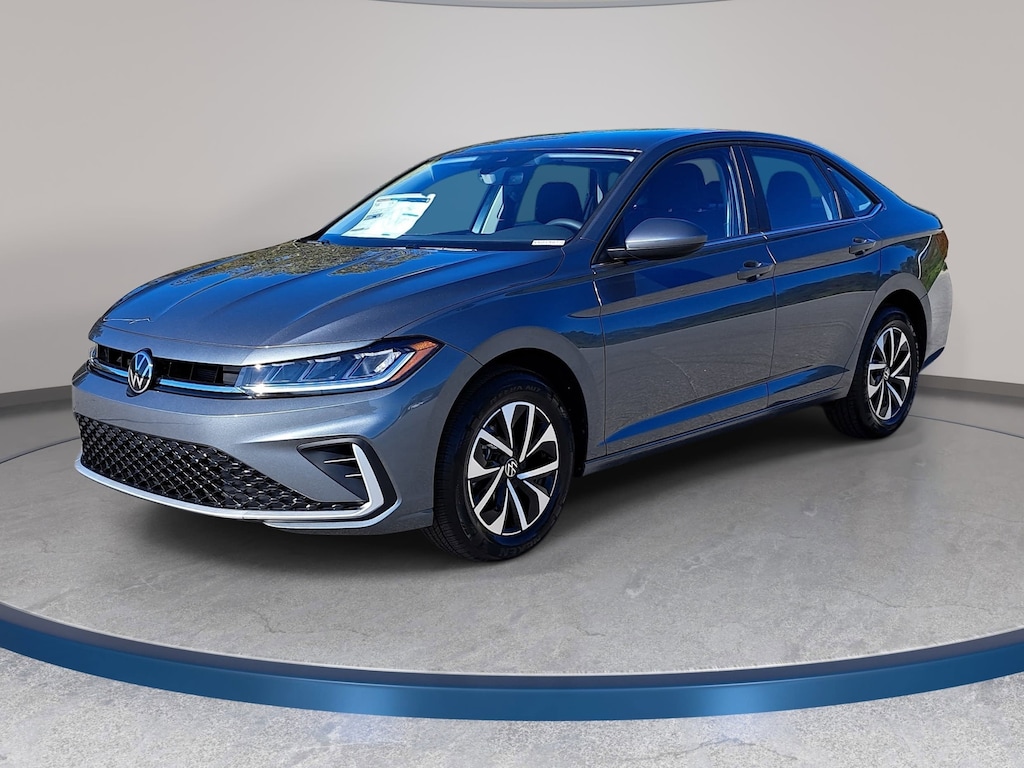Platinum Gray Metallic 2026 Volkswagen Jetta 1.5T S FWD 8-Speed Automatic with Tiptronic 1.5L I-4 DI DOHC Turbocharged Titan Black w/Cloth Seat Trim, Automatic temperature control, Brake assist, Electronic Stability Control, Emergency communication system: VW Car-Net Safe & Secure 5-year, Exterior Parking Camera Rear, Front Bucket Seats, Front dual zone A/C, Fully automatic headlights, Radio: MIB3 Composition Color with 8" Touchscreen, Rain sensing wipers, Remote keyless entry, Split folding rear seat, Steering wheel mounted audio controls, VW Care, Wheels: 16" 2-Tone Machined Alloy.