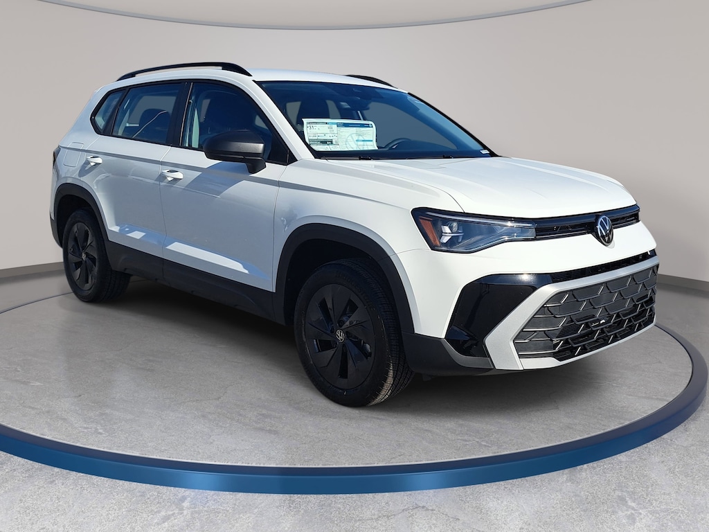 Pure White 2026 Volkswagen Taos 1.5T S FWD 8-Speed Automatic with Tiptronic 1.5L I4 Turbocharged DOHC 16V LEV3-SULEV30 174hp Air Conditioning, AM/FM radio, Auto High-beam Headlights, Brake assist, Cloth Seating Surfaces, Electronic Stability Control, Emergency communication system: VW Car-Net Safe & Secure 5-year, Exterior Parking Camera Rear, Front Bucket Seats, Fully automatic headlights, Radio: MIB3 Composition Color AM/FM, Rain sensing wipers, Rear window wiper, Remote keyless entry, Rubber Mats Kit, Speed-sensing steering, Split folding rear seat, Steering wheel mounted audio controls, Traction control, VW Care, Wheels: 17" Dark Silver Painted Alloy.
