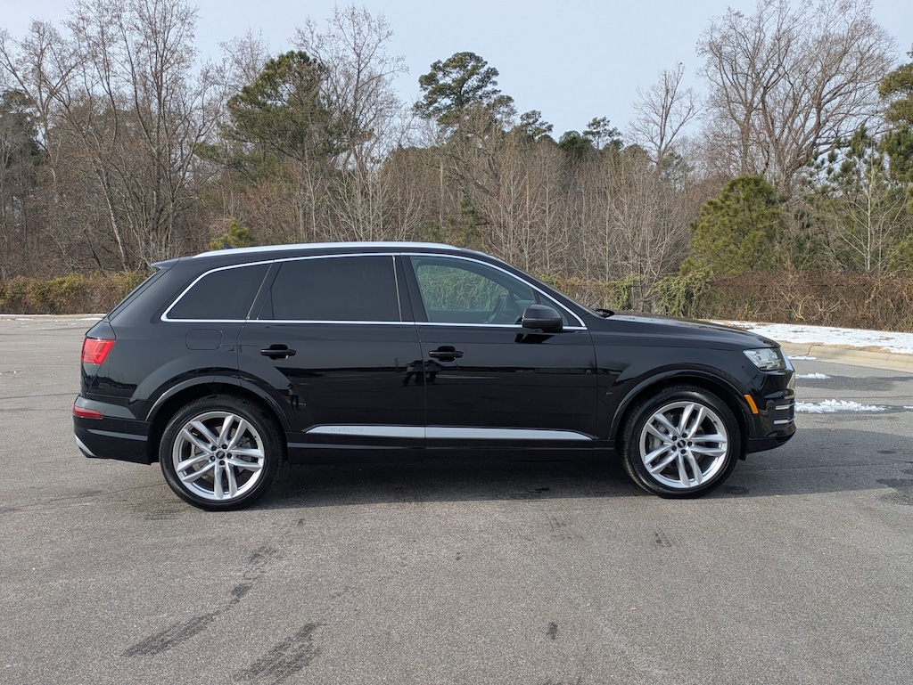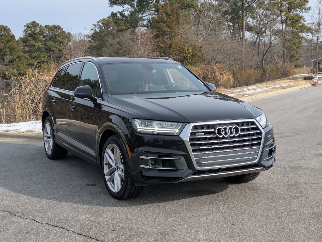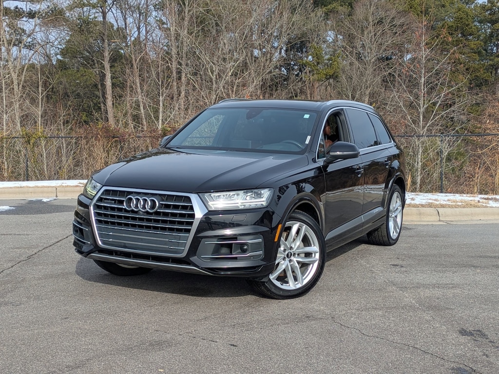 Clean CARFAX. Orca Black Metallic 2018 Audi Q7 3.0T Prestige quattro quattro 8-Speed Automatic with Tiptronic 3.0L TFSI V6 DOHC LOCAL TRADE IN, BACK UP CAMERA, LEATHER, HEATED SEATS, PANORAMIC SUNROOF, THIRD ROW SEAT, ALL WHEEL DRIVE, POWER LIFTGATE, HOMELINK GARAGE DOOR TRANSMITTER, PARKTRONIC FRONT & REAR PARKING SENSORS, REFRIGERATED/COOLED BOX LOCATED IN THE GLOVEBOX, COLD WEATHER PACKAGE W HEATED REAR SEATS, 3-SPOKE MULTIFUNCTION STEERING WHEEL W PADDLES, HEATED Q-DESIGN, TOWING PACKAGE, CLEAN CARFAX, MUST SEE TO APPRECIATE!, 3-Spoke Multifunction Steering Wheel w/Paddles, 3rd row seats: bench, ABS brakes, Auto-dimming Rear-View mirror, Black Rubber All-Weather Floor Mats (Set of 4), Cold Weather Package, Compass, Electronic Stability Control, Exterior Parking Camera Rear, Four wheel independent suspension, Front dual zone A/C, Garage door transmitter: HomeLink, Heated front seats, Heated Rear Seats, High intensity discharge headlights: Xenon plus, Illuminated entry, Leather Seating Surfaces, Leather Shift Knob, Leather steering wheel, Power Liftgate, Power moonroof, Power passenger seat, Radio: MMI Radio Plus w/Audi Sound System, Rain sensing wipers, Steering wheel mounted audio controls, Towing Package, Traction control, Turn signal indicator mirrors, Wheels: 19" 5-V-Spoke Design.