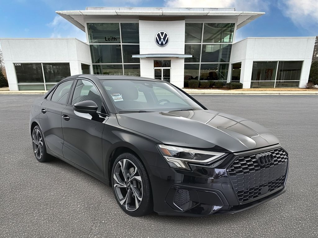 Brilliant Black 2023 Audi A3 40 Premium FrontTrak 7-Speed Automatic S tronic 2.0L 4-Cylinder TFSI FrontTrak Clean CARFAX. Black/Rock Gray Stitching Leather, ABS brakes, Alloy wheels, Electronic Stability Control, Emergency communication system, Front dual zone A/C, Heated door mirrors, Heated Front Bucket Seats, Heated front seats, Illuminated entry, Low tire pressure warning, Power moonroof, Remote keyless entry, Traction control.