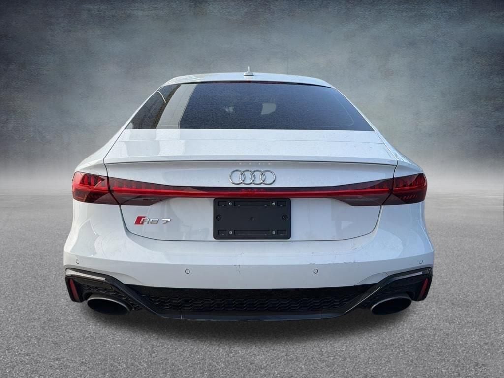 Glacier White 2025 Audi RS 7 performance 4.0T quattro 8-Speed Automatic with Tiptronic 4.0L V8 TFSI quattro CARFAX One-Owner. - Audi advanced key and power tailgate - Audi connect® CARE with remote start (limited time sub., accept. of Terms req'd) - Audi connect® NAV & PLUS (ltd. time sub., accpt. Terms req.) - Audi drive select with RS modes - Audi MMI® Navigation plus with MMI touch response - Audi smartphone interface & Wireless phone charging pad - Audi virtual cockpit plus - Bang & Olufsen® Premium sound system with 3D sound - Bluetooth® with audio streaming - Carbon twill structure inlays - Four-zone automatic climate control - Garage door opener (HomeLink®) - HD Matrix-design LED headlights with Audi laser light and high beam assist - Heated and ventilated front RS sport seats - Heated, auto-dimming, power-folding exterior mirrors with memory - Integrated Toll Module®: Nationwide Toll Collection Technology (subscription req'd) - Power adjustable front seats and lumbar with driver memory - Power sunroof - SiriusXM® w/ 360L (3 mo. trial subscription, acceptance of Terms req'd) - Split-folding rear seat back (40/20/40) - Sport seats plus, front, heated and ventilated - Three-spoke multifunction steering wheel with shift paddles and RS mode button - Traffic sign recognition - Valcona leather seats, perforated with honeycomb stitching and RS embossing, - Advanced Airbag Protection System with 10 airbags - Anti-lock Braking System (ABS) w/ Brake Assist - Electronic Stabilization Control (ESC), multi-mode - Electronic vehicle immobilization w/ anti-theft alarm & interior motion sensor - Tire Pressure Monitoring System (TPMS) - Front & rear parking sensors w/ surround view cameras - Audi pre sense basic (preventative occupant protection) - Audi pre sense front (forward collision warning & automatic emergency braking) - Child safety Locks for rear doors, power - Lower Anchors and Tethers for CH, Bang & Olufsen Premium 3D Sound System, Navigation system: Audi MMI Navigation plus with Touch Response.