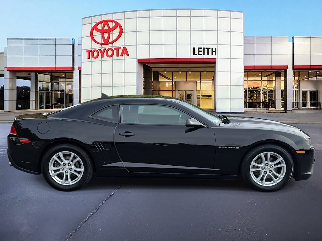 Clean CARFAX. Black 2014 Chevrolet Camaro 1LT RWD 6-Speed Automatic with TapShift 3.6L V6 DGI DOHC VVT LOCAL TRADE IN, BACK UP CAMERA, NO ACCIDENTS, MUST SEE!, 18 Painted Aluminum Wheels, 3-Spoke Leather-Wrapped Steering Wheel, 6-Way Power Driver Adjuster w/Power Recline, 6-Way Power Fr Passenger Adjuster w/Power Recline, ABS brakes, Air Conditioning, Carpeted Front Floor Mats, Compass, Delay-off headlights, Electronic Stability Control, Four wheel independent suspension, Front Bucket Seats, Front Sport Bucket Seats, Fully automatic headlights, Leather-Wrapped Shift Knob, Manual Rake & Telescopic Steering Column, OnStar 6 Months Directions & Connections Plan, Power door mirrors, Power driver seat, Power passenger seat, Power Programmable Door Locks, Power steering, Power windows, Premium audio system: Chevrolet MyLink, Rear anti-roll bar, Rear window defroster, Remote Keyless Entry, Remote keyless entry, Speed-sensing steering, Stainless-Steel Dual-Outlet Exhaust, Steering wheel mounted audio controls, Telescoping steering wheel, Traction control.