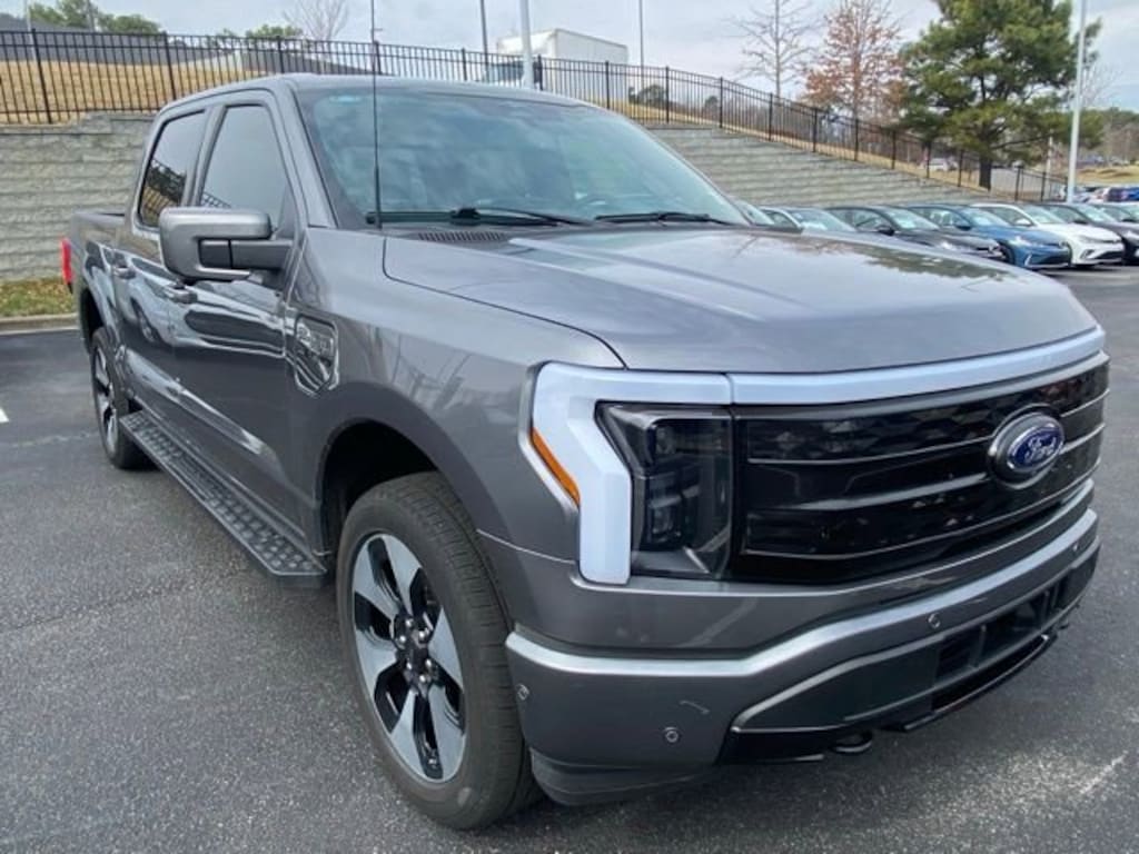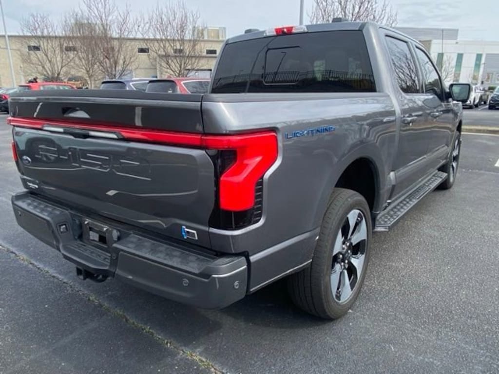 Stone Gray Metallic 2023 Ford F-150 Lightning Platinum AWD Single-Speed Automatic Electric Motor Local Trade, Non-Smoker, Auto High-beam Headlights, Automatic temperature control, Brake assist, Delay-off headlights, Electronic Stability Control, Equipment Group 710A Standard, Front Bucket Seats, Front dual zone A/C, Fully automatic headlights, Heated front seats, Heated rear seats, Memory seat, Multicontour Seats w/Active Motion Removal, Navigation System, Pedal memory, Power driver seat, Power moonroof, Power passenger seat, Radio: B&O Unleashed Sound System by Bang & Olufsen, Rain sensing wipers, Split folding rear seat, Steering wheel memory, Steering wheel mounted audio controls, SYNC 4A w/Enhanced Voice Recognition, Ventilated front seats, Wheels: 22" Bright Machined w/Ebony Black.