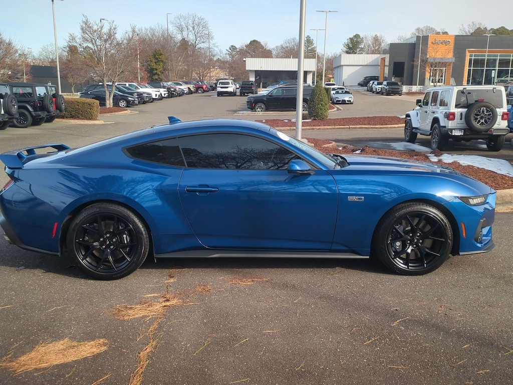 CARFAX One-Owner. Atlas Blue Metallic 2024 Ford Mustang GT RWD 10-Speed Automatic 5.0L V8 Ti-VCT CARFAX CERTIFIED.. NO ACCIDENTS, ONE-OWNER, 19" Brembo Brake System w/Performance Linings, 9-Speaker Stereo System, Ambient Lighting w/MyColor, Black Painted Strut-Tower Brace, Cloth/Vinyl Heated Bucket Seats, Dual-Zone Electronic Automatic Temperature Control, Ebony Black Grille, Electric Hand-Operated Parking Brake (Drift Brake), Equipment Group 301A High Package, Front Towing Hooks, GT Performance Package, Heavy-Duty Front Springs, Performance Raised Rear Wing, SiriusXM w/360L & HD Radio, Unique Chassis Tuning, Unique Stability Control, Upsized Rear Sway Bars, Wheels: 19" x 9" Fr/19" x 9.5" Rr Carbonized.