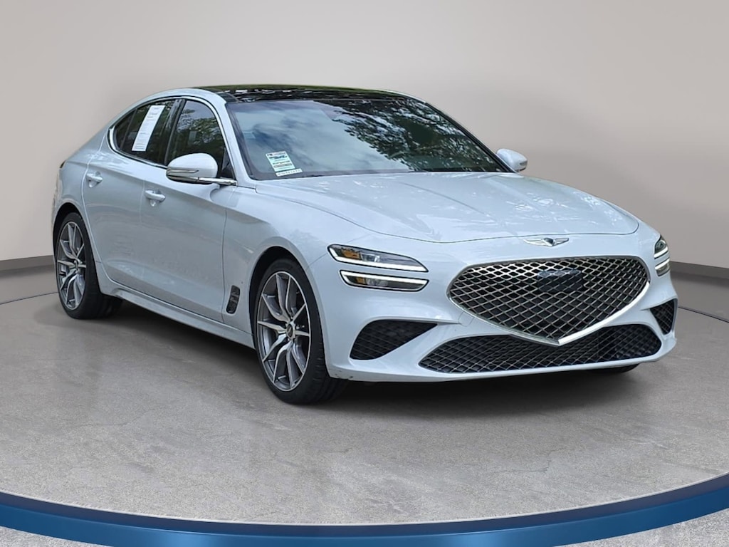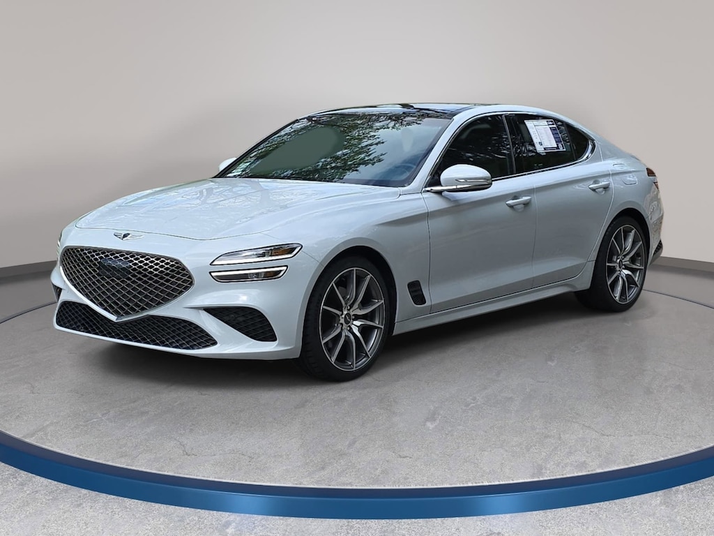 Makalu Gray 2022 Genesis G70 2.0T RWD 8-Speed Automatic 2.0L Turbocharged LOCAL TRADE IN, BACK OF CAMERA, LEATHER, HEATED SEATS, COOLES SEATS, SUNROOF, NAVIGATION, SMART KEY W PUSH BUTTON START, LANE DEPARTURE ALERT W STEERING ASSIST, APPLE CARPLAY & ANDROID AUTO, NO ACCIDENTS, MUST SEE!, ABS brakes, Air Conditioning, Android Auto & Apple CarPlay, Anti-whiplash front head restraints, Auto High-beam Headlights, Electronic Stability Control, Exterior Parking Camera Rear, Four wheel independent suspension, Front Bucket Seats, Front dual zone A/C, Fully automatic headlights, Heated front seats, Leatherette Seating Surfaces, Navigation System, Option Group 02, Power driver seat, Power steering, Power windows, Prestige Package, Radio: AM/FM/SiriusXM/HD Audio System, Rear seat center armrest, Rear window defroster, Remote keyless entry, Steering wheel mounted audio controls, Telescoping steering wheel, Traction control, Turn signal indicator mirrors, Wheels: 18 x 8.0J Alloy, Wide Sunroof.