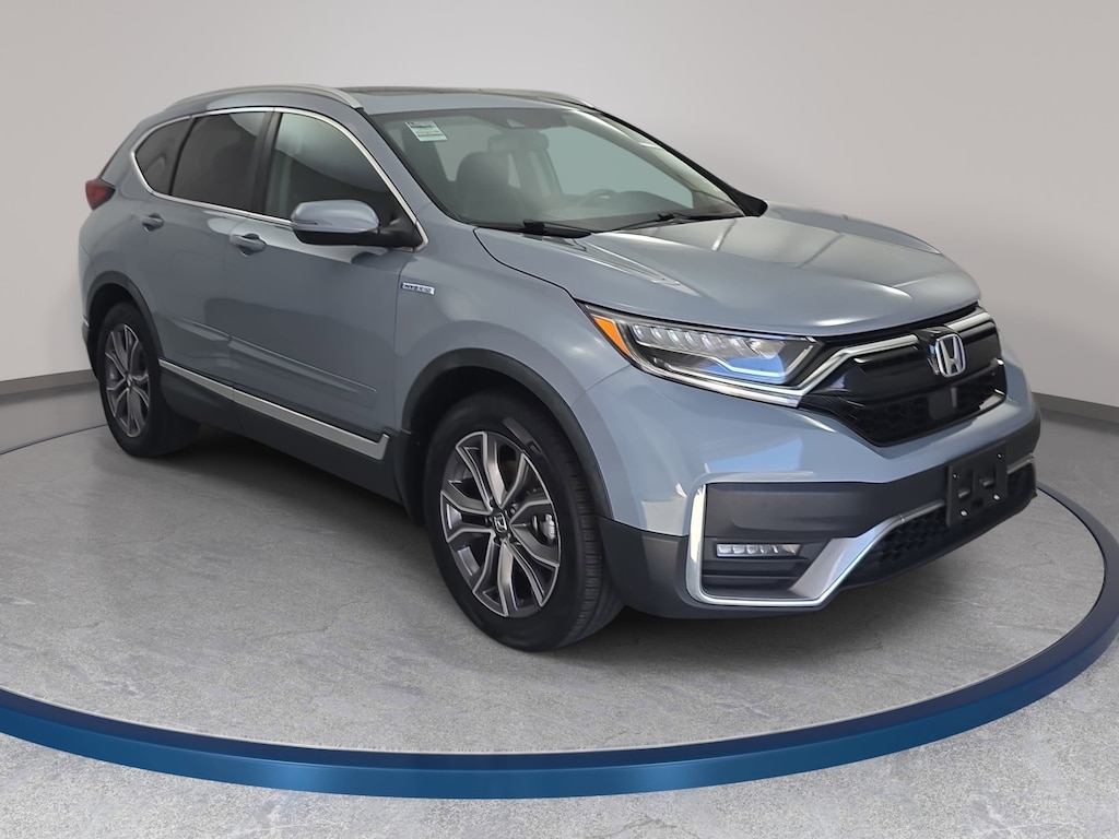 Clean CARFAX. Sonic Gray Pearl 2021 Honda CR-V Hybrid Touring AWD eCVT 2.0L I4 DOHC 16V 4-Wheel Disc Brakes, 9 Speakers, ABS brakes, Adaptive Cruise Control: Adaptive Cruise Control (ACC) with Low-Speed Follow, AM/FM radio: SiriusXM, Apple CarPlay/Android Auto, Auto High-beam Headlights, Auto-dimming Rear-View mirror, Automatic temperature control, Blind Spot Information (BSI) System warning, Brake assist, Bumpers: body-color, Electronic Stability Control, Exterior Parking Camera Rear, Forward collision: Collision Mitigation Braking System (CMBS) + FCW mitigation, Four wheel independent suspension, Front Center Armrest, Front dual zone A/C, Heated door mirrors, Heated Front Bucket Seats, Memory seat, Navigation system: Honda Satellite-Linked Navigation System, Power door mirrors, Power driver seat, Power Liftgate, Power moonroof, Power steering, Power windows, Radio: 330-Watt AM/FM/HD/SiriusXM Prem Audio System, Remote keyless entry, Roof rack: rails only, Speed-sensing steering, Steering wheel mounted audio controls, Telescoping steering wheel, Tilt steering wheel, Traction control, Turn signal indicator mirrors, Wheels: 19" Machine-Finished Alloy w/Gray Inserts.