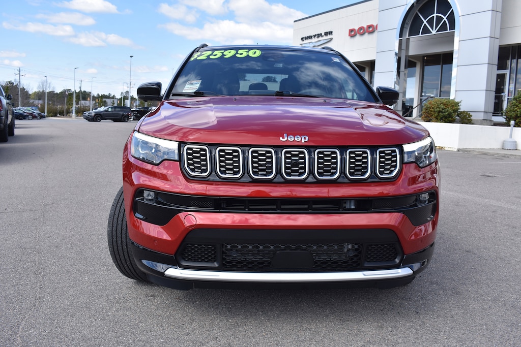 Clean CARFAX. CARFAX One-Owner. Red Hot Pearlcoat 2025 Jeep Compass Limited 4WD 8-Speed Automatic 2.0L I4 DOHC 10.1" Touchscreen Display, 2nd Row USB Type A/C Charge Only, 3.73 Final Drive Ratio, 360 Surround View Camera System, 4-Wheel Disc Brakes, 6 Speakers, ABS brakes, Active Driving Assist System, Air Conditioning, Alexa Built-In, Alloy wheels, AM/FM radio: SiriusXM, Apple CarPlay/Android Auto, Auto High-beam Headlights, Auto-dimming Rear-View mirror, Automatic temperature control, Brake assist, Bumpers: body-color, Cluster 10.25" TFT Color Display, Compass, Connected Travel & Traffic Services, Delay-off headlights, Diamond Black Door Cladding, Diamond Black Exterior Sill, Diamond Black Fascias, Diamond Black Wheel Flares, Driver Assist Group I, Driver Seat Memory, Dual front impact airbags, Dual front side impact airbags, Electronic Stability Control, Elite Group, Emergency communication system: Jeep Connect, Foot Activated Open 'N Go Liftgate, Four wheel independent suspension, Front anti-roll bar, Front Bucket Seats, Front dual zone A/C, Front fog lights, Fully automatic headlights, GPS Navigation, HD Radio, Heated door mirrors, Heated front seats, Illuminated entry, Integrated Voice Command w/Bluetooth, Knee airbag, Leather Shift Knob, Leather steering wheel, Leatherette Seats, LED Low/Highbeam Projector Headlamps, Low tire pressure warning, Occupant sensing airbag, Outside temperature display, Overhead airbag, Panic alarm, ParkView Rear Back-Up Camera, Power 2-Way Passenger Lumbar Adjust, Power 8-Way Adjust Front Passenger Seat, Power door mirrors, Power driver seat, Power Liftgate, Power steering, Power windows, Premium audio system: UConnect 5, Premium Leather Trimmed Bucket Seats, Premium LED Fog Lamps, Premium Taillamps, Quick Order Package 29G, Radio: Uconnect 5 w/10.1" Display, Rain sensing wipers, Rear anti-roll bar, Rear seat center armrest, Rear window defroster, Rear window wiper, Remote keyless entry, Reversible Carpet/Vinyl Cargo Mat, Security system, SiriusXM w/360L, Speed control, Split folding rear seat, Spoiler, Steering wheel mounted audio controls, Tachometer, Telescoping steering wheel, Tilt steering wheel, Traction control, Traffic Sign Recognition, Trip computer, Turn signal indicator mirrors, Variably intermittent wipers, Ventilated Front Seats, Wheels: 19" x 7.5" Painted Diamond Cut Aluminum, Wireless Charging Pad.