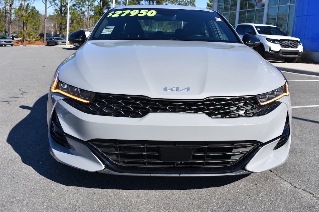 Wolf Gray 2023 Kia K5 GT-Line AWD 8-Speed Automatic 1.6L I4 DGI Turbocharged DOHC 16V LEV3-ULEV70 180hp 4-Wheel Disc Brakes, 6 Speakers, ABS brakes, Air Conditioning, Alloy wheels, AM/FM radio: SiriusXM, Apple CarPlay & Android Auto, Auto High-beam Headlights, Automatic temperature control, Brake assist, Bumpers: body-color, Carpeted Floor Mats, Cloth/SynTex Seat Trim, Delay-off headlights, Dual front impact airbags, Dual front side impact airbags, Electronic Stability Control, Forward Collision Avoidance-Assist, Four wheel independent suspension, Front anti-roll bar, Front dual zone A/C, Front fog lights, Fully automatic headlights, GT-Line Premium Package, Heated door mirrors, Heated Front Bucket Seats, Heated front seats, Heated steering wheel, Highway Driving Assist, Illuminated entry, Knee airbag, LED Projection Headlamps, Low tire pressure warning, Navigation System, Occupant sensing airbag, Outside temperature display, Overhead airbag, Overhead console, Panic alarm, Power door mirrors, Power driver seat, Power steering, Power windows, Radio data system, Radio: AM/FM/MP3 Audio System, Rear anti-roll bar, Rear side impact airbag, Rear window defroster, Remote keyless entry, Security system, Smart Cruise Control w/Stop & Go, Speed control, Speed-sensing steering, Split folding rear seat, Spoiler, Sport steering wheel, Steering wheel mounted audio controls, Tachometer, Telescoping steering wheel, Tilt steering wheel, Traction control, Trip computer, Turn signal indicator mirrors, Variably intermittent wipers, Wheels: 18" Gloss Black Machined Finish Alloy.