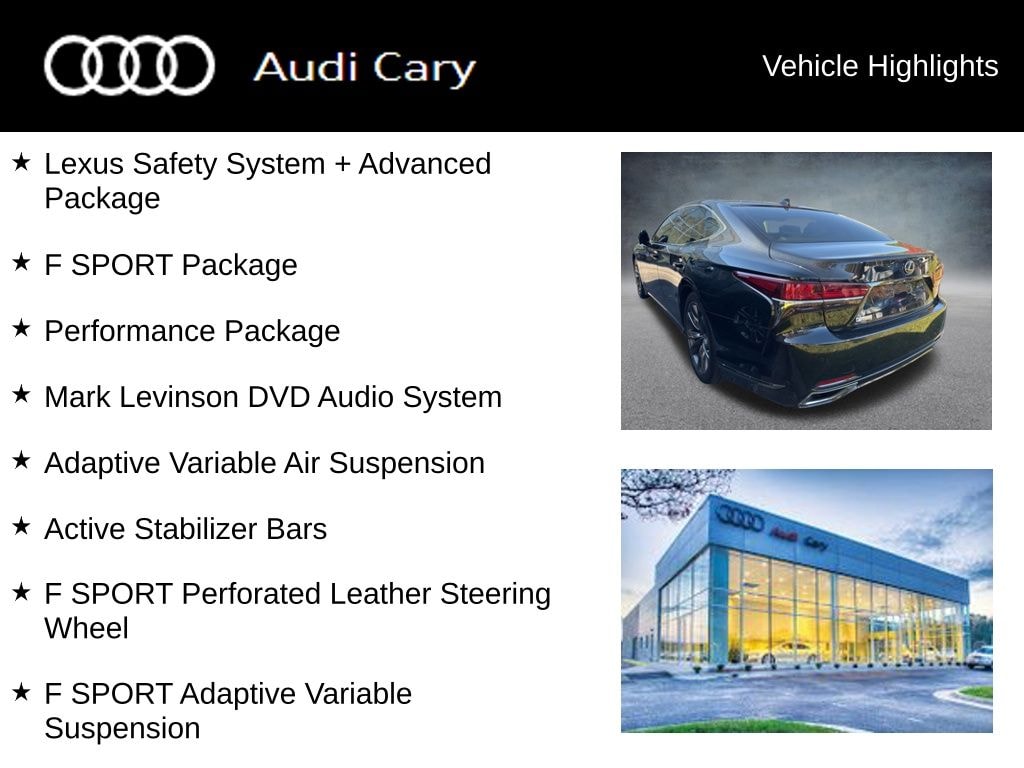 Caviar 2020 Lexus LS 500 F Sport 10-Speed Automatic 3.5L V6 DOHC 24V RWD Leather, 24" Heads-Up Display (HUD) (GF), 6-Piston Front & 4-Piston Rear Brake Calipers, Active Stabilizer Bars, Adaptive Variable Air Suspension, Aluminum Door Trim, Aluminum Pedals & Interior Trim, F SPORT Adaptive Variable Suspension, F SPORT Exterior Styling, F SPORT Package, F SPORT Perforated Leather Shift Knob, F SPORT Perforated Leather Steering Wheel, Front Cross Traffic Alert, LED Headlamps w/Adaptive Front Lighting System, Lexus Safety System + Advanced Package, LFA Inspired Instrument Panel w/Movable Display, Mark Levinson DVD Audio System, Panorama Glass Roof, Panoramic View Monitor, Pedestrian Alert, Performance Package, Pre-Collision System, Ultrasuede Headliner.