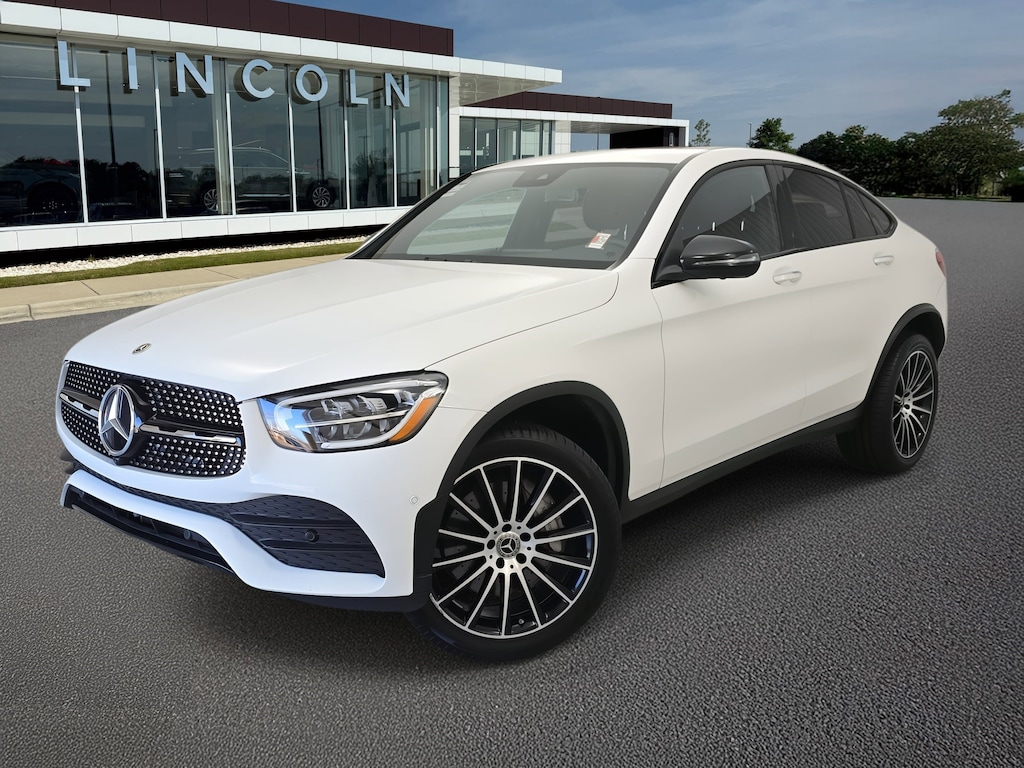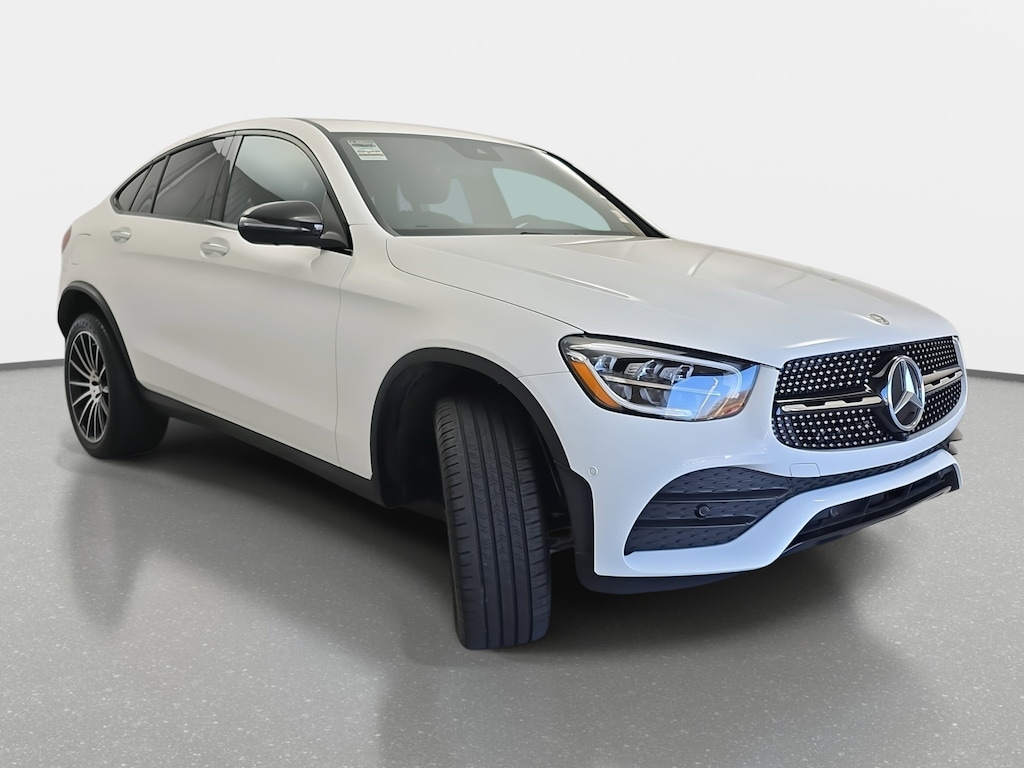 Polar White 2023 Mercedes-Benz GLC GLC 300 Coupe 4MATIC® 4MATIC® 9-Speed Automatic I4 AMG® Line, AMG® Line Body Styling, AMG® Line Exterior, AMG® Line Floor Mats, AMG® Line Interior, Black Fabric Headliner, Burmester® Surround Sound System, High-Gloss Black Elements, Illuminated Star, Inductive Wireless Charging & NFC Pairing, LED Logo Projectors, MB-Tex Dashboard, Night Package, Perforated Brake Discs, Wheels: 8.5J x 20" AMG® Multispoke w/Black Accents.