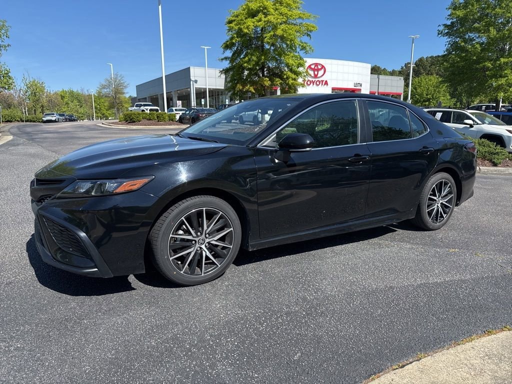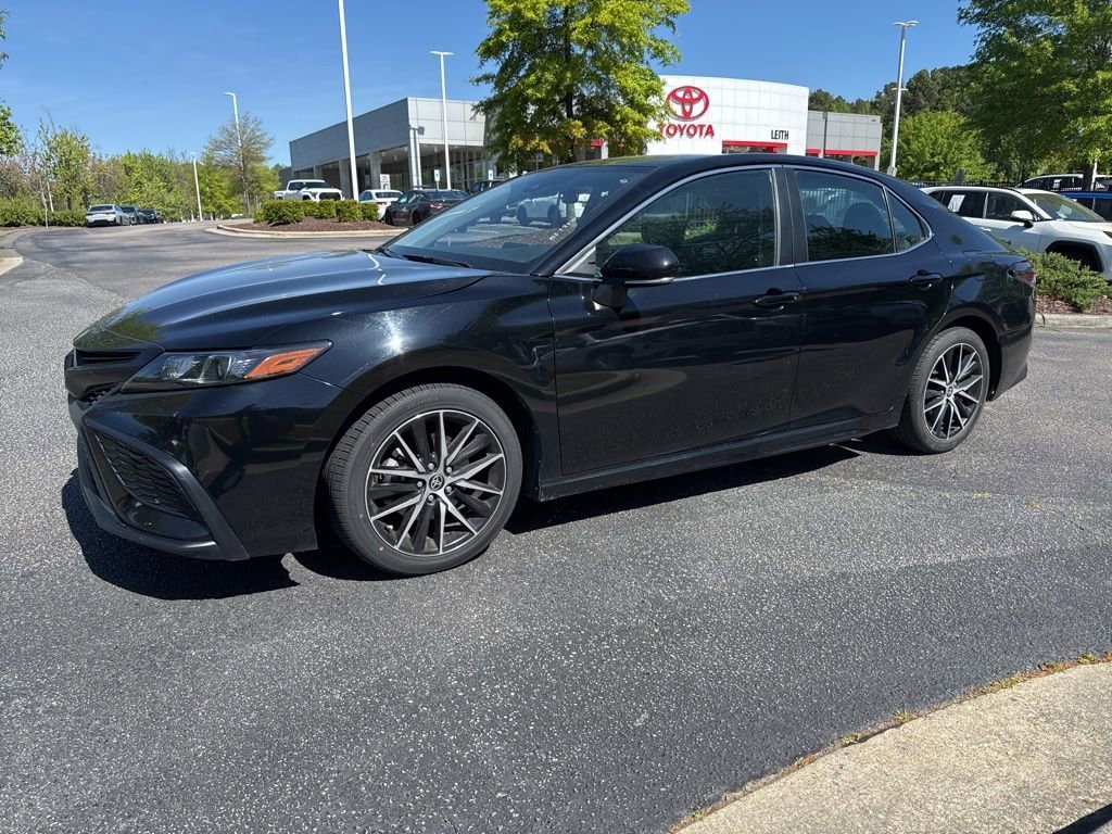 CARFAX One-Owner. Midnight Black Metallic 2024 Toyota Camry SE FWD 8-Speed Automatic 2.5L I4 DOHC 16V LOCAL TRADE IN, BACK OF CAMERA, LEATHER, PRE-COLLISION SYSTEM W PEDESTRIAN DETECTION, FULL-SPEED RANGE DYNAMIC RADAR CRUISE CONTROL, LANE DEPARTURE ALERT W STEERING ASSIST, APPLE CARPLAY & ANDROID AUTO, NO ACCIDENTS, MUST SEE!, Black w/Sport SofTex Seat Trim w/Fabric Inserts, 18 x 8J Alloy Wheels, ABS brakes, Air Conditioning, AM/FM radio: SiriusXM, Apple CarPlay/Android Auto, Auto High-beam Headlights, Automatic temperature control, Electronic Stability Control, Exterior Parking Camera Rear, Four wheel independent suspension, Front Bucket Seats, Front dual zone A/C, Fully automatic headlights, Leather steering wheel, Outside temperature display, Power driver seat, Power steering, Power windows, Rear seat center armrest, Rear window defroster, Remote keyless entry, Split folding rear seat, Sport SofTex Seat Trim w/Fabric Inserts, Steering wheel mounted audio controls, Telescoping steering wheel, Traction control, Turn signal indicator mirrors.