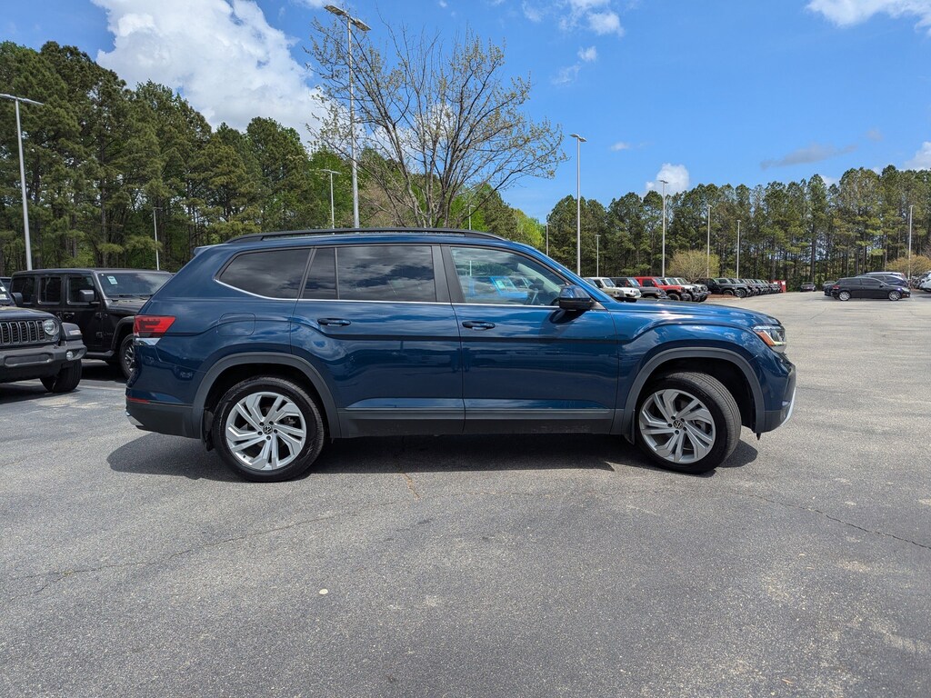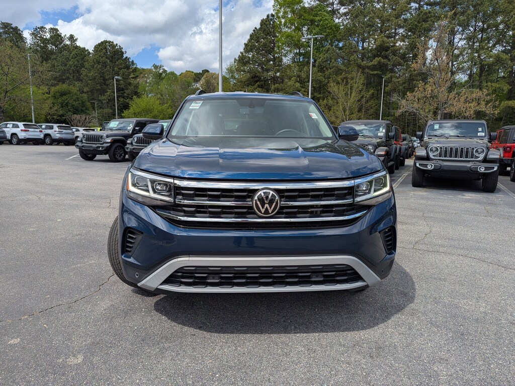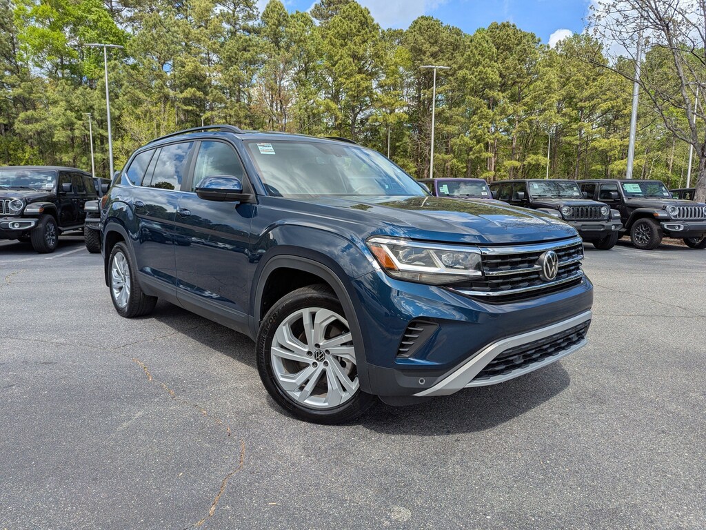 Tourmaline Blue Metallic 2022 Volkswagen Atlas 3.6L V6 SE w/Technology AWD 8-Speed Automatic with Tiptronic 3.6L VR6 3rd row seats: split-bench, Automatic temperature control, Exterior Parking Camera Rear, Heated Comfort Front Bucket Seats, Outside temperature display, Perforated V-Tex Leatherette Seating Surfaces, Power driver seat, Power Liftgate, Radio: MIB3 Composition Media w/8" Touchscreen, Rear air conditioning.
