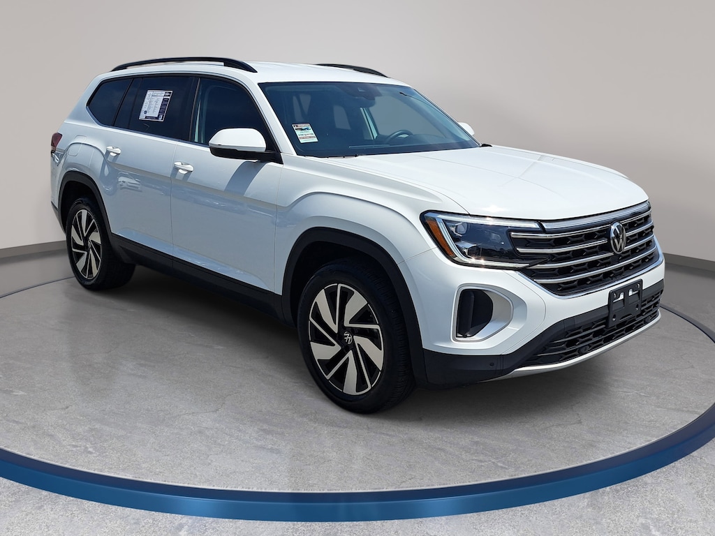 Pure White 2025 Volkswagen Atlas 2.0T SE w/Technology AWD 8-Speed Automatic 2.0L TSI 20" 2-tone machined alloy wheels, 3rd row seats: split-bench, AM/FM radio: SiriusXM with 360L, Auto High-beam Headlights, Automatic temperature control, Brake assist, Delay-off headlights, Electronic Stability Control, Exterior Parking Camera Rear, Front dual zone A/C, Front fog lights, Fully automatic headlights, heated and Actively ventilated front bucket seats, Heated front seats, Heated steering wheel, MIB3 composition media radio, perforated V-Tex leatherette seating surfaces, Power driver seat, Power Liftgate, Rain sensing wipers, Rear air conditioning, Rear window wiper, Remote keyless entry, Split folding rear seat, Steering wheel mounted audio controls, Ventilated front seats.